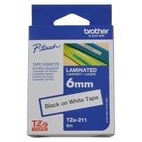 HTZ211 - 6mm Black on White Brother P-Touch Tape TZe-211