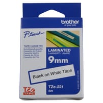 HTZ221 - 9mm Black on White Brother P-Touch Tape TZe-221