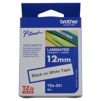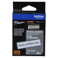 HTZS231 - 12mm Black on White (Strong Adhesive) Brother P-Touch Tape TZeS231