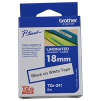 HTZ241 - 18mm Black on White Brother P-Touch Tape TZe241