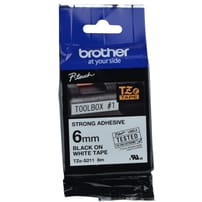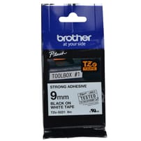 HTZS211 - 9mm Black on White (Strong Adhesive) Brother P-Touch Tape TZeS211