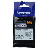 HTZS241 - 18mm Black on White (Strong Adhesive) Brother P-Touch Tape TZeS241